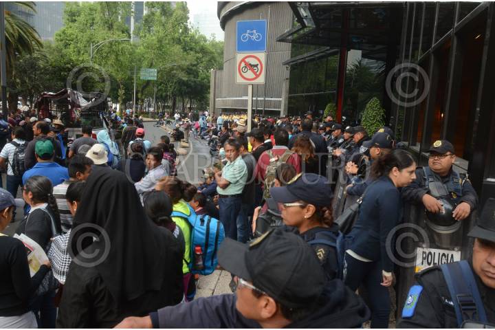 CIUDAD DE MÉXICO, 01JUNIO2016.- Maestros de la CNTE que se oponen a la Reforma Educativa, se se manifestaron en al Bolsa Mexicana de Valores, y de ahi salieron en marcha al Senado de la República sobre la avenida Reforma. FOTO: ARMANDO MONROY /CUARTOSCURO.COM