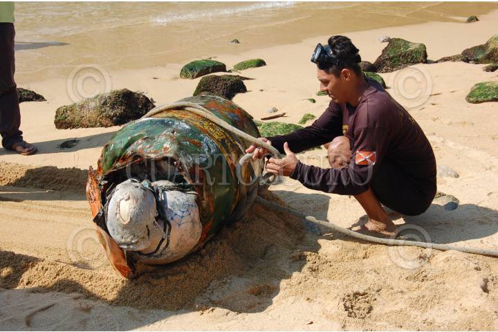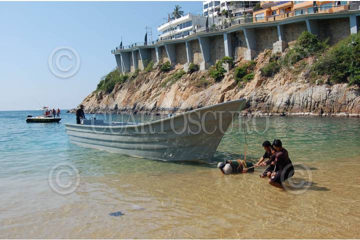 ACAPULCO, GUERRERO, 17NOVIEMBRE2007.- Vecinos de “Playa Olvidada” localizaron ayer el cuerpo de un desconocido a diez metros de profundidad, el cual estaba dentro de un bote metálico, similar al que encontraron en los acantilados 72 horas antes, informó el coordinador operativo de la Policía Ministerial, Jaime Ramírez Manzanarez. FOTO: MARINO D. VALDÉS/CUARTOSCURO.COM