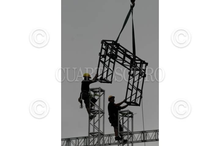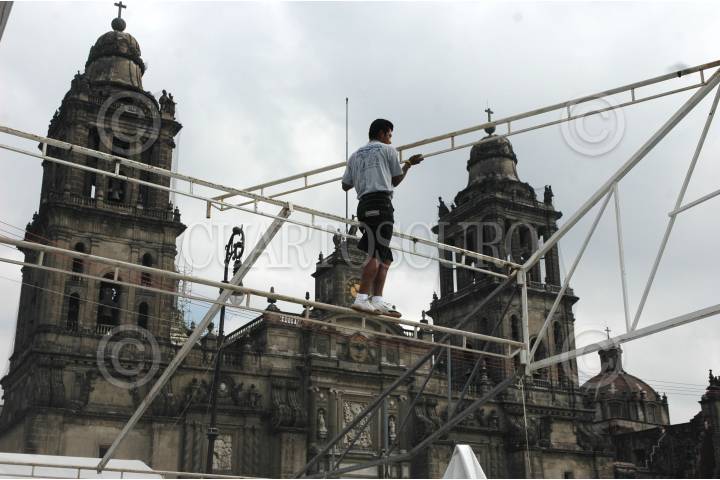 MÉXICO, D.F., 30ENERO2010.- Trabajadores montan una estructura metálica en el Zócalo de la ciudad. FOTO: RODOLFO ANGULO/CUARTOSCURO.COM