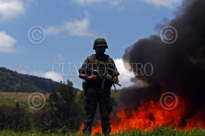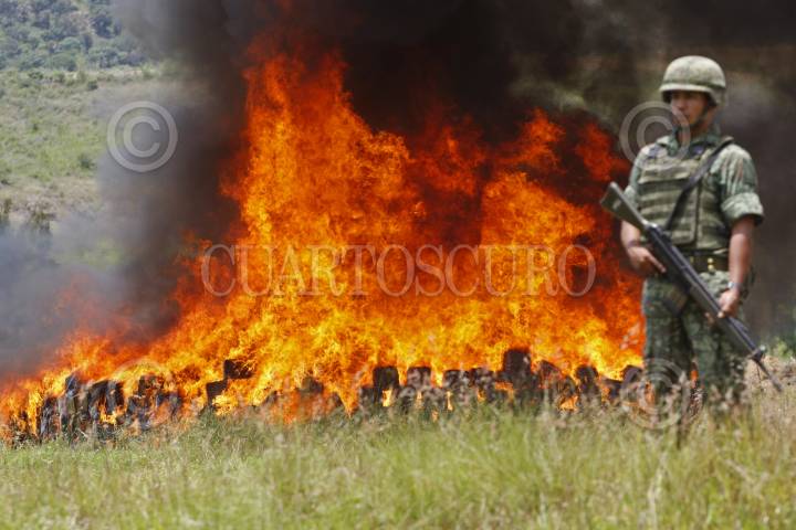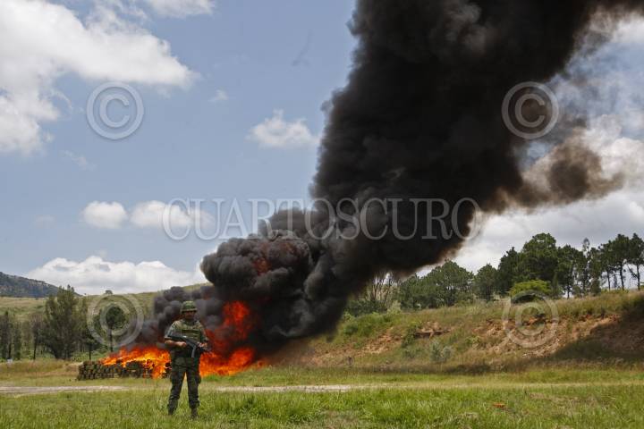 ZAPOPAN, JALISCO. 18AGOSTO2015.-Hoy en el Club Cinegético Jalisciense A.C. se llevo a cabo la incineración y destrucción de narcóticos entre los que destacaban, 5 millones 493 mil 223 kilogramos de marihuana, 17 mil 774 kilogramos de semilla de marihuana, 7.2 kilogramos de plantas de marihuana, .294 kilogramos de metanfetamina, 28 unidades de psicotrópicos y dos objetos del delito. FOTO: FERNANDO CARRANZA GARCIA / CUARTOSCURO.COM