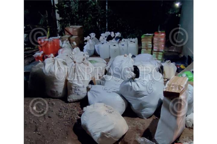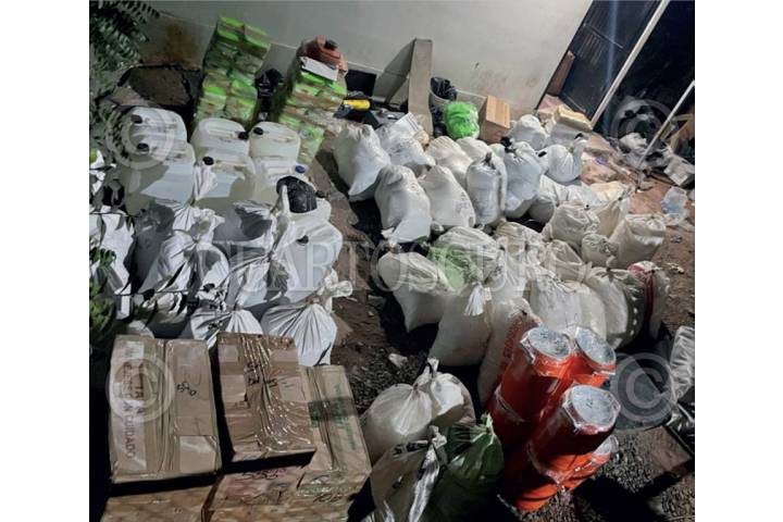 Elementos de la SEDENA, GN y FGR realizaron el aseguramiento de 3,907 kg de metanfetamina sólida y 2,408 en estado líquido en Culiacán, Sinaloa.