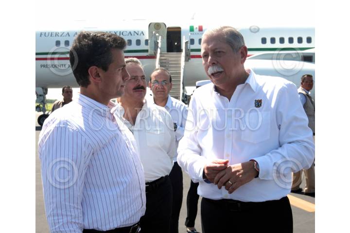 CIUDAD VICTORIA, TAMAULIPAS, 02OCTUBRE2013.- El Presidente Enrique Peña Nieto y el Gobernador de Tamaulipas, Egidio Torre Cantú se reunieron con productores agrícolas y agropecuarios, donde anunciaron diversas acciones que se efectuaran en las zonas afectadas por la tormenta tropical “Ingrid” y prometieron atender la problemática que enfrentan el campo y la ganadería a raíz del meteoro. FOTO: CUARTOSCURO.COM