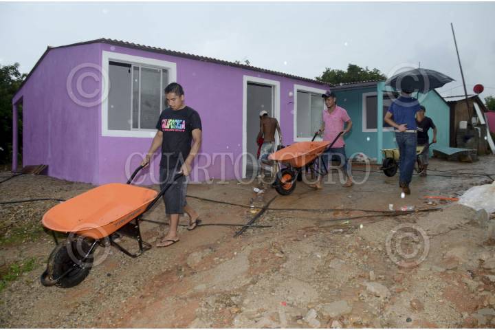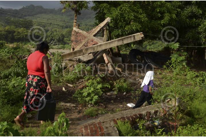 COYUCA DE BENITEZ, GUERRERO, 16SEPTIEMBRE2014.- En la comunidad de Barrio Nuevo, en La Laja, aún se sufren los estragos de las fuertes lluvias del año pasado. A pesar de que el Gobierno Federal entregó algunas casas, construidas por la compañía SEDATU, los habitantes se quejan de que las obras están mal hechas pues se inundan y el agua se transmina por los techos, además de que no cuentan con drenaje ni agua potable, por lo que piden al Ejecutivo se haga una revisión de lo que está pasando en las casas que este entrega como apoyo por los daños que sufridos en septiembre pasado por la tormenta Manuel e Ingrid. Mientras tanto en otro pueblo del fuerte Emiliano Zapata los pobladores deben reparar ellos mismos sus viviendas al no contar con apoyo. FOTO: BERNANDINO HERNANDEZ /CUARTOSCURO.COM