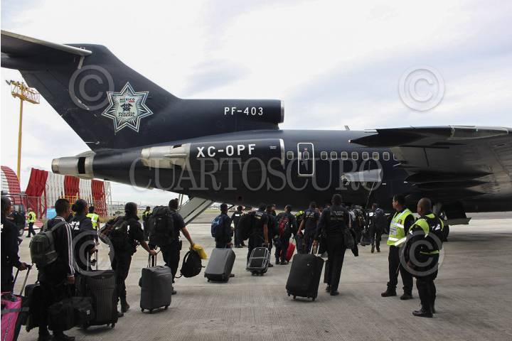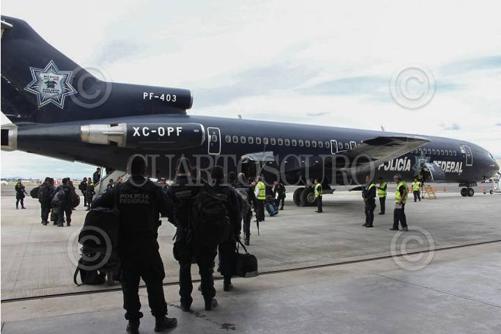 MEXICO, D.F., 16SEPTIEMBRE2014.- Un avión Boeing 727 de la Policía Federal, partió con rumbo a Los Cabos, Baja California Sur, con la instrucción de sumarse a las labores de apoyo a las personas afectadas por el paso del huracán "Odile". FOTO: CUARTOSCURO.COM