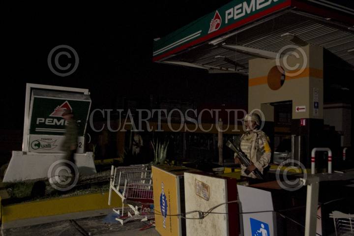 LOS CABOS, BAJA CALIFORNIA SUR., 18SEPTIEMBRE2014.- La noche de ayer elementos del ejército mexicano resguardaron las instalaciones de las gasolineras en Los Cabos, Baja California Sur, para evitar la rapiña que se ha desarollado por el desabasto que hay en la zona, a raíz de las afectaciones por el huracán Odile. FOTO: GUILLERMO PEREA /CUARTOSCURO.COM