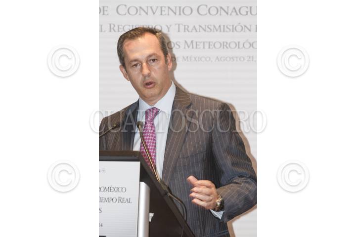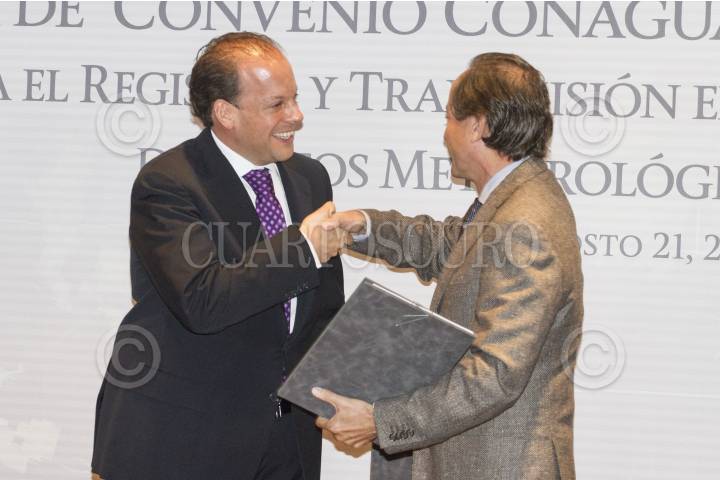 MÉXICO, D.F., 21AGOSTO2014.- David Korenfeld, titular de Conagua, y Eduardo Tricio Haro, presidente del Consejo de Administración de Aeromexico, durante la firma de un convenio de colaboración entre las dos instituciones. FOTO: ISAAC ESQUIVEL /CUARTOSCURO.COM