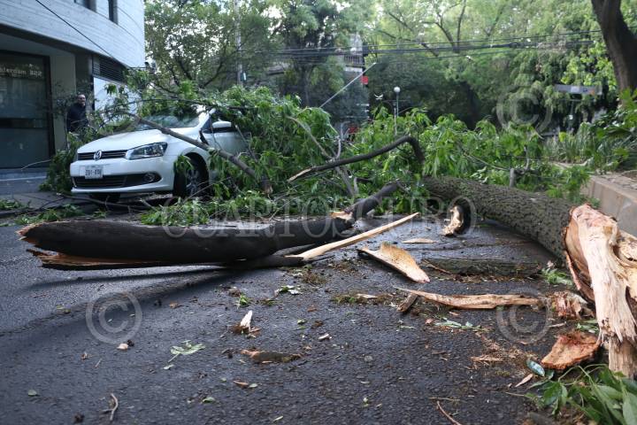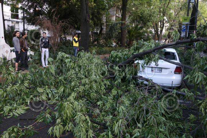 CIUDAD DE MÉXICO, 09MARZO2016.- Al rededor de 200 arboles derribados y una veintena de lesionados por caídas de objetos ramas, postes y vehículos dañados dejaron los fuertes vientos que azotaron en la Ciudad de México y el área metropolitana. FOTO: SAÚL LÓPEZ /CUARTOSCURO.COM