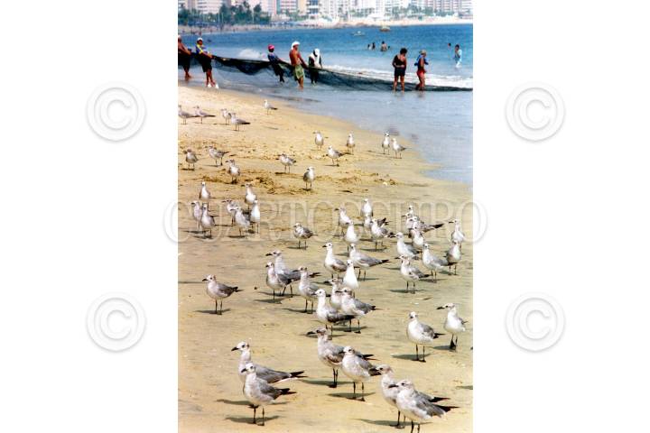 ACAPULCO, GUERRERO 29DICIEMBRE2005.- Pese a lo contaminado de la bahía y a nuevos metodos de pesca, El chinchorro, red que es tendida a lo largo de la bahía y arengado manualmente por decenas de hombres, sigue siendo el metodo mas utilizado para pescar en el puerto de Acapulco. En la foto, gaviotas esperan recibir algo de la pesca obtenida. FOTO: Miguel Dimayuga/CUARTOSCURO.COM