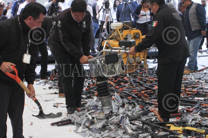 CIUDAD DE MÉXICO, 25ABRIL2017.- La Procuraduría Federal del Consumidor, encabezó el acto de destrucción de 2,082 replicas de armas de fuego que fueron retiradas del mercado en diferentes operativos que esta institución realizó, por incumplir las Normas Oficiales Mexicanas y construir un riesgo para los usuarios. FOTO: ANTONIO CRUZ /CUARTOSCURO.COM