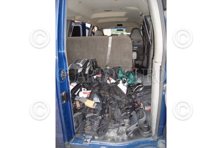 CHILPANCINGO, GUERRERO, 09MAYO2007.- Fue abandonado una de las camionetas con logotipos de la AFI en el lugar de la ejecución del director de la policia preventiva municipal, en su interior se encontraron uniformes de la AFI y gorras dcon el logotipo de la PGR, batos y un fuerte arsenal. FOTO: OSCAR ALVARADO/CUARTOSCURO.COM
