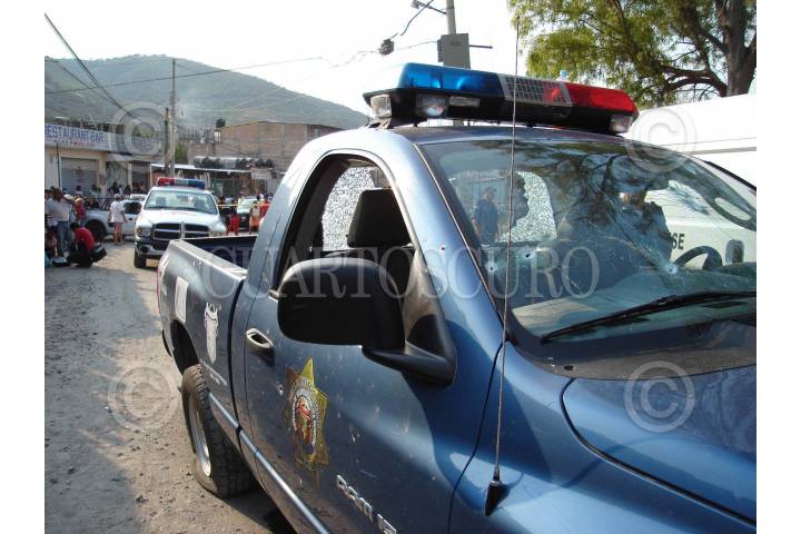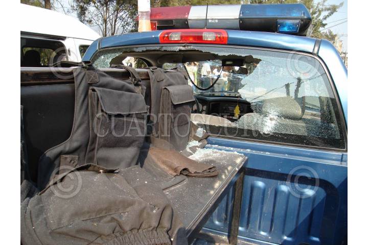CHILPANCINGO, GUERRERO, 09MAYO2007.- La camioneta en la que se trasladaba el director de la policia prventiva municipa Artemio Mejía Cháves "Cobra", resultó dañada con varios tiros de armas de alto poder durante el enfrentamiento cuando un grupo armado disfrazado con uniformes de la AFI y gorras de la PGR mataron a el jefe policial muy cerca de su domicilio. FOTO: OSCAR ALVARADO/CUARTOSCURO.COM