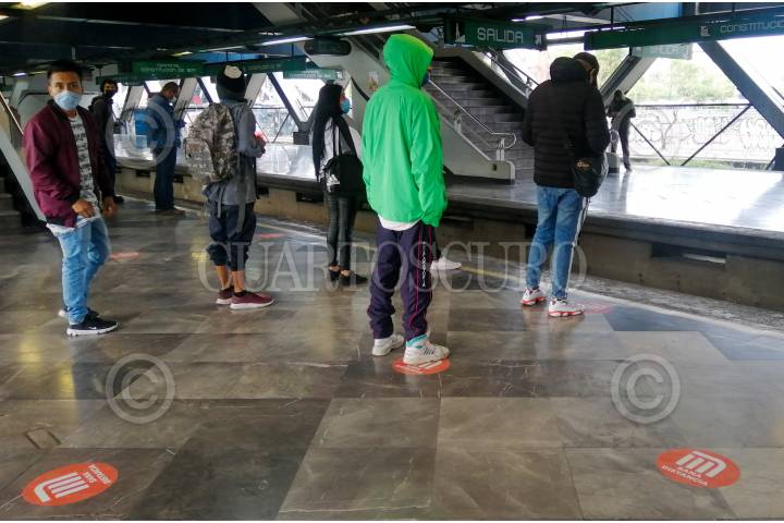 Usuarios transitaron manteniendo la sana distancia y el uso de cubrebocas en el Metro Constitución de 1917