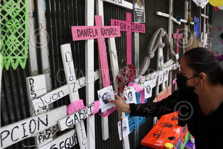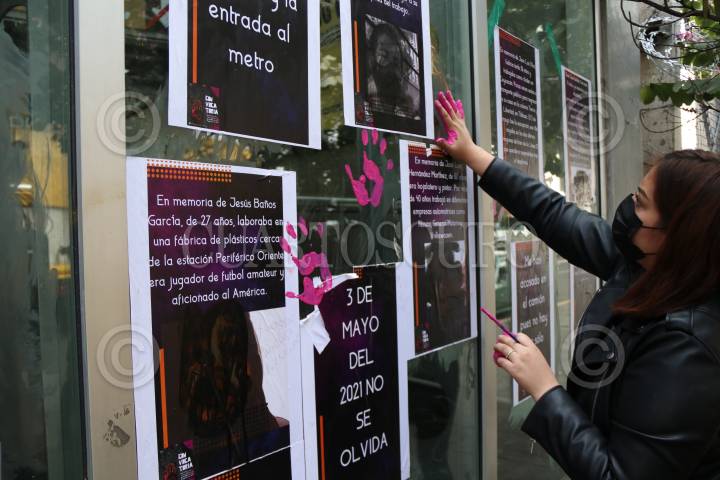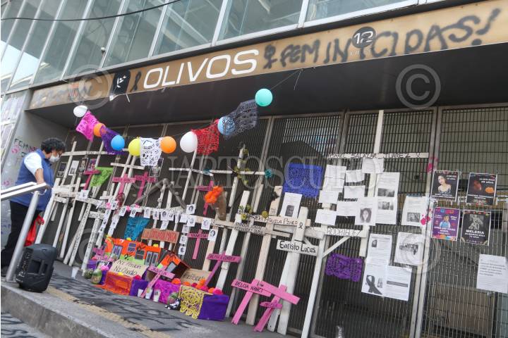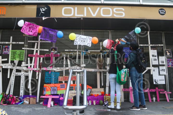 Colectivas feministas de la periferia realizaron una ofrenda afuera del metro Olivos, en honor a las víctimas de feminicidio y a las que fallecieron el pasado 3 de mayo en el colapso de los vagones del metro en la Estación del Metro Olivos de la Línea 12
