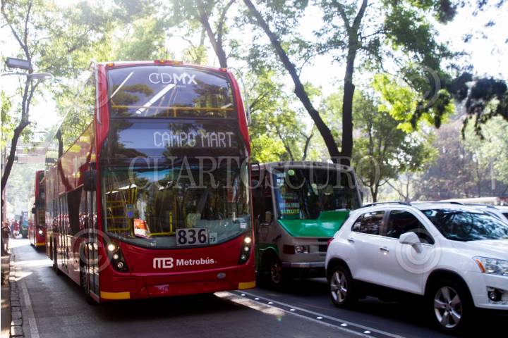 MÉXICO, D.F., 06AGOSTO2014.- Vehículos y camiones del metrobus parados sobre avenida Insurgentes ante la marcha de estudiantes del Movimiento de Estudiantes No Aceptados (MENA) que marcharon sobre Paseo de la Reforma para exigir se aumente la matrícula en universidades públicas del país. FOTO: DIEGO SIMÓN SÁNCHEZ /CUARTOSCURO.COM