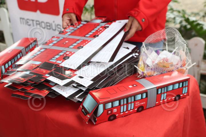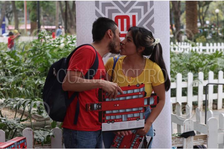 CIUDAD DE MÉXICO, 14FEBRERO2024. Se regalaron metrobuses armables por el Día del Amor y la Amistad frente a la estación de Metrobús Jardín Pushkin. FOTO: EDGAR NEGRETE LIRA/CUARTOSCURO.COM