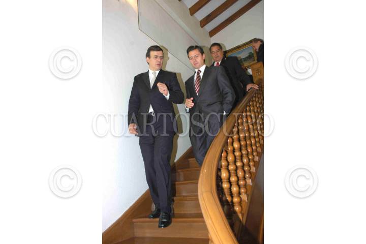MÉXICO, D.F., 04OCTUBRE2007.- Enrique Peña Nieto, gobernador del Estado de México, y Marcelo Ebrard Casaubon, jefe de gobierno del Distrito Federal, se reunieron para conocer el avance de las obras metropolitanas que se realizan en el Valle de México. FOTO: CUARTOSCURO.COM
