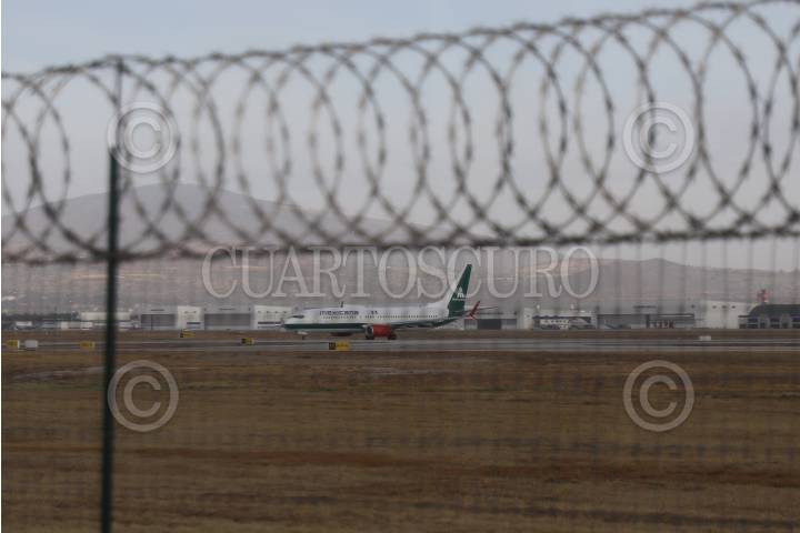 ZUMPANGO , EDOMEX, 09ENERO2025.- Una aeronaves de Mexicana de Aviación llega a la pista del AIFA. FOTO: DANIEL AUGUSTO/ CUARTOSCURO.COM