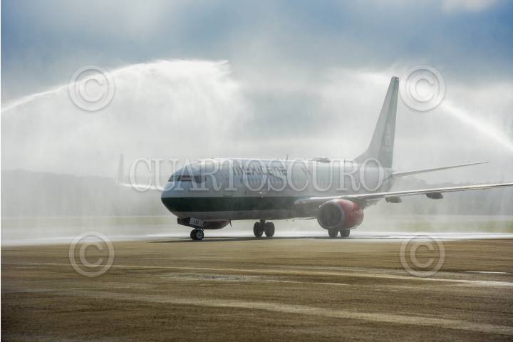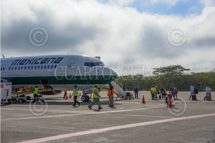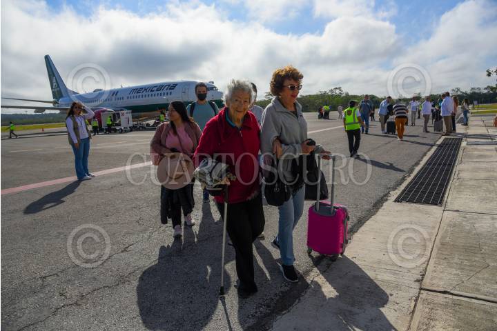 CAMPECHE, CAMPECHE, 09FEBRERO2025.- Después de un mes de suspensión, Mexicana de Aviación retomó sus vuelos a Campeche. En esta fase inicial, la aerolínea operará tres vuelos de reconocimiento, transportando a representantes de agencias de viajes con el objetivo de impulsar el turismo. El primer vuelo aterrizó hoy con más de 60 pasajeros a bordo, en un avión con capacidad para 170 personas. FOTO: MICHAEL BALAM/CUARTOSCURO.COM
