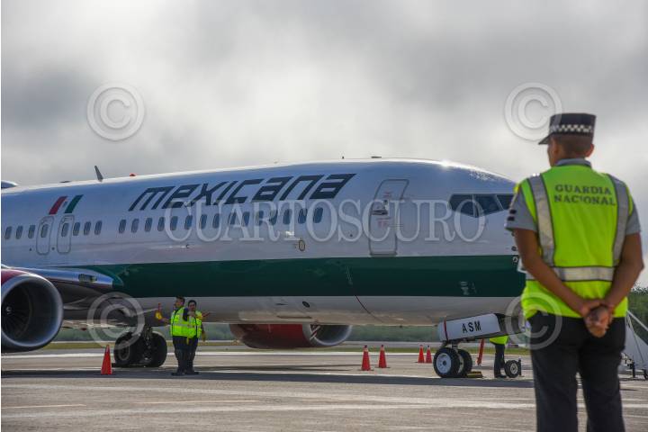 ZUMPANGO, ESTADO DE MÉXICO, 26DICIEMBRE2023.- Mexicana "Aerolínea del Pueblo de México" reanudó operaciones después de 13 años sin actividad. El vuelo inaugural partió del el Aeropuerto Internacional Felipe Ángeles (AIFA) al Aeropuerto Internacional de Tulum (ATI) de Quintana Roo. FOTO: MARIO JASSO/CUARTOSCURO.COM