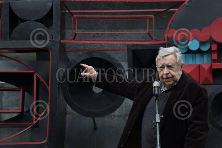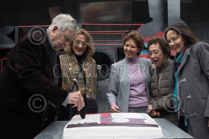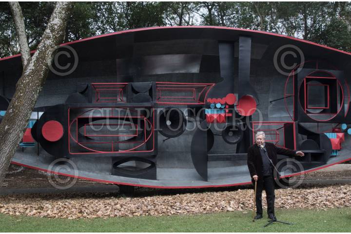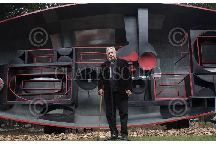 CIUDAD DE MÉXICO, 29NOVIEMBRE2018.- El maestro Manuel Felguérez celebró su cumpleaños número 90 en el Museo de Arte Moderno, en realidad cumple el 12 de diciembre, pero las autoridades de cultura aprovecharon que el zacatecano acudió a la presentación de su libro "Manuel Felguérez Obra Pública" y la reinauguración de su escultura "El barco, México 68", la cual fue restaurada. FOTO: MOISÉS PABLO /CUARTOSCURO.COM