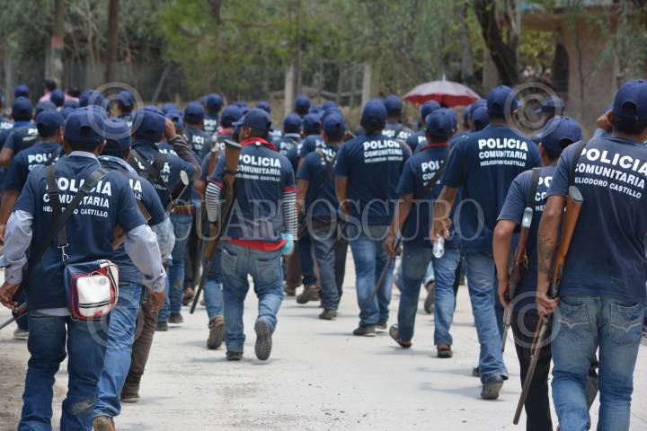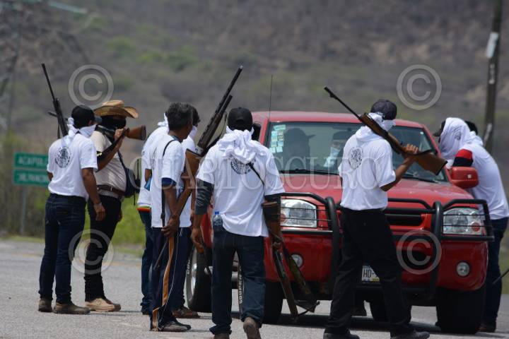 MEZCALA, GUERRERO, 28MAYO2017.- Habitantes del municipio de Mezcala, conformaron su policía comunitaria con la finalidad de auto protegerse de hechos violentos. Llevaron a cabo filtros en la entrada de esta población que comunica a demás a otras comunidades, con la finalidad de que entren a sus comunidades solo la gente que autoricen. Los comunitarios portaban armas de bajo calibre 22 y escopetas. FOTO: JOSÉ I. HERNÁNDEZ /CUARTOSCURO.COM