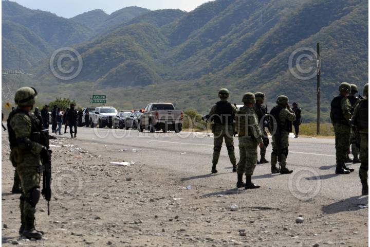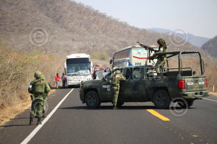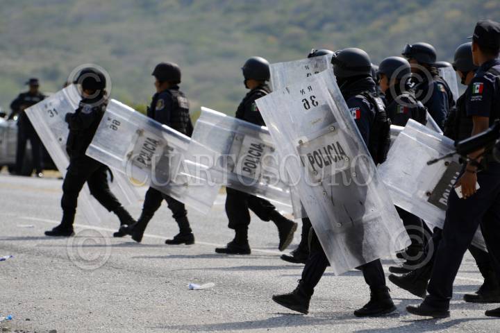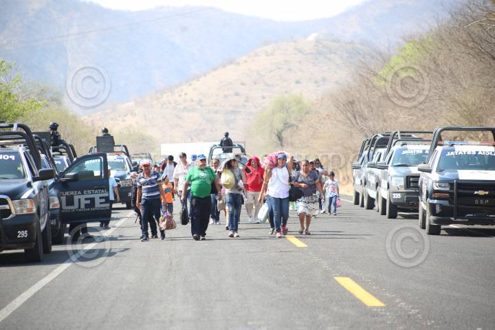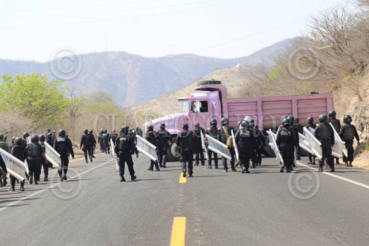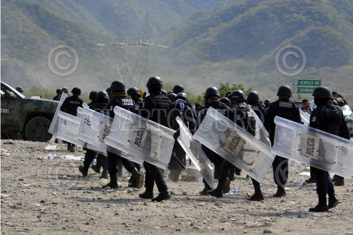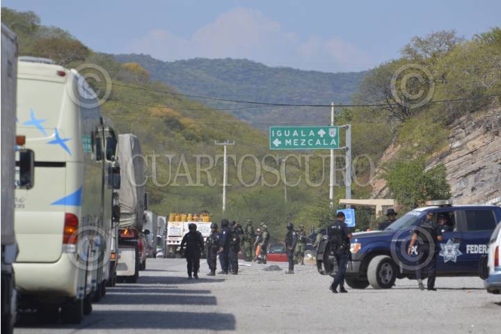 MEZCALA, GUERRERO, 23ABRIL2019.- Pobladores de la comunidad de Mezcala, Eduardo Neri bloquearon por mas de 4 horas la carretera federal Chilpancingo-Iguala para exigir castigo a los policías federales y estatales que este lunes en la noche se metieron a una vivienda y golpearon a un señor, un joven y a una mujer a quienes además les robaron sus teléfonos celulares, y por lo cual agentes de la Policía Estatal desalojaron a habitantes de esta comunidad y posteriormente detuvieron a cuatro personas, entre las cuales un menor de edad que participaban en la protesta. Luego del desalojo, hombres armados escondidos desde un cerro hicieron dos disparos al parecer de escopeta calibre 22 lo que motivó que varias patrullas de la Policía Estatal ingresaran a esta localidad de Mezcala sin lograr la detención de los agresores. FOTO: EDUARDO GUERRERO /CUARTOSCURO.COM