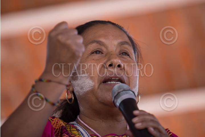 MEZCALA, JALISCO, 05DICIEMBRE2017.- Pobladores del la etnia indígena Coca pertenecientes de los alrededores del Lago de Chapala, recibieron a María de Jesús Patricio Maritínez, Marichuy, vocera del Concejo Indígena de Gobierno y aspirante independiente a la Presidencia de México, durante su recorrido por el estado en la promoción de la propuesta del Congreso Nacional Indígena y la recaudación de firmas que la ayude a aparecer en la boleta electoral de las elecciones del 2018. FOTO: ADOLFO VLADIMIR /CUARTOSCURO.COM