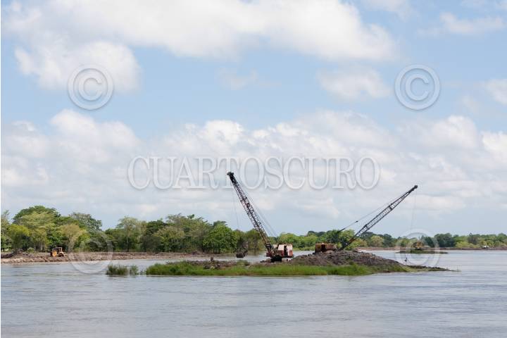 NACAJUCA, TABASCO, 04AGOSTO2011.- Maquinaria pesada laboran a marcha forzada sobre las aguas y orillas del desbordado río Mezcalapa, el cual ya hace daño en varias comunidades indígenas chontales. Muchos de los habitantes manifiestan que han perdido parcelas de siembras y semovientes con sus crías. FOTO: MARCO POLO GUZMÁN HERNÁNDEZ/CUARTOSCURO.COM