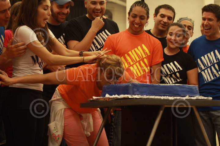 MÉXICO, D.F., 23JUNIO2009.- Rocío Banquels protagonista del musical Mama Mia, partio un pastel con motivo de su cumpleaños al término del ensayo de la puesta en escena FOTO: SÁSHENKA GUTIÉRREZ/CUARTOSCURO.COM