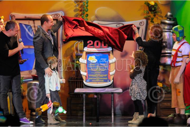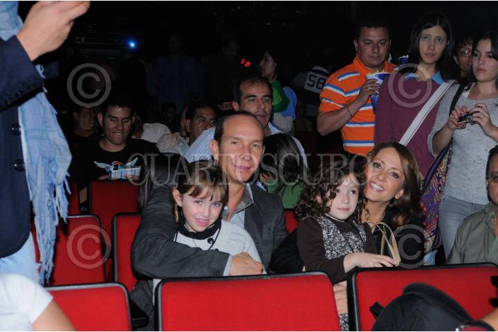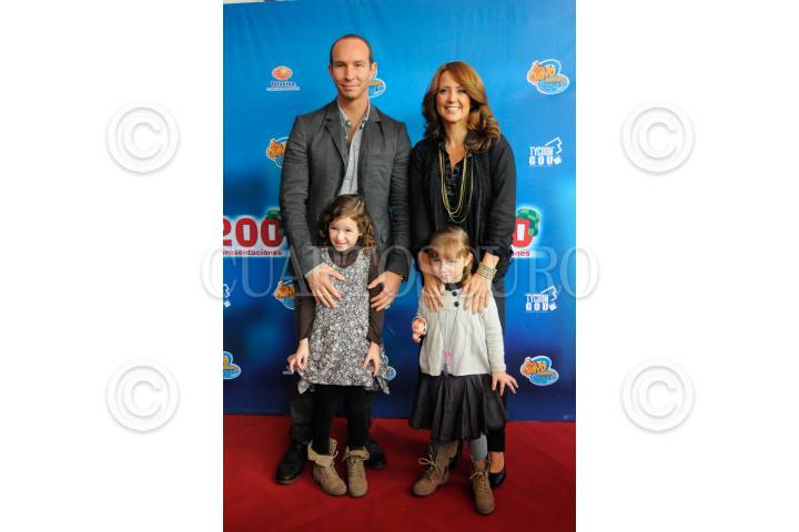 MÉXICO, D.F, 10JULIO2011.- El cantante, Erik Rubín, la conductora de Televisión, Andrea Legarreta y sus hijas, Mia Rubin Legarreta y Nina Rubín Legarreta, fueron los padrinos de las 200 representaciones de "El chavo animado" que se presentó en Teatro Blanquita. FOTO: FRANCISCO RODRÍGUEZ/CUARTOSCURO.COM
