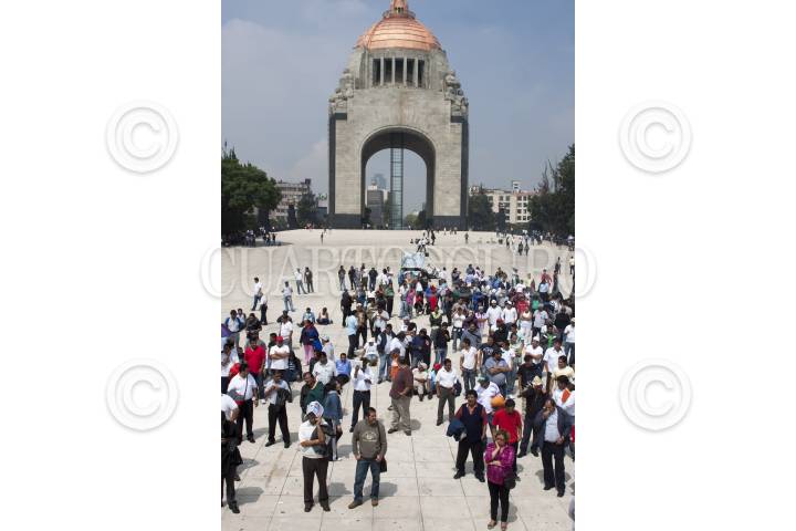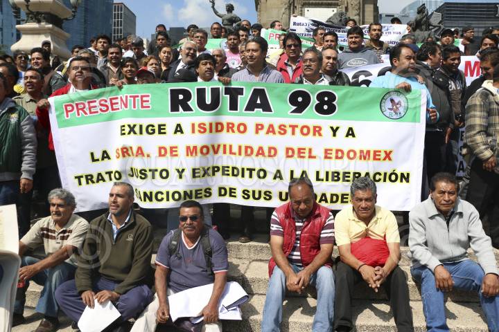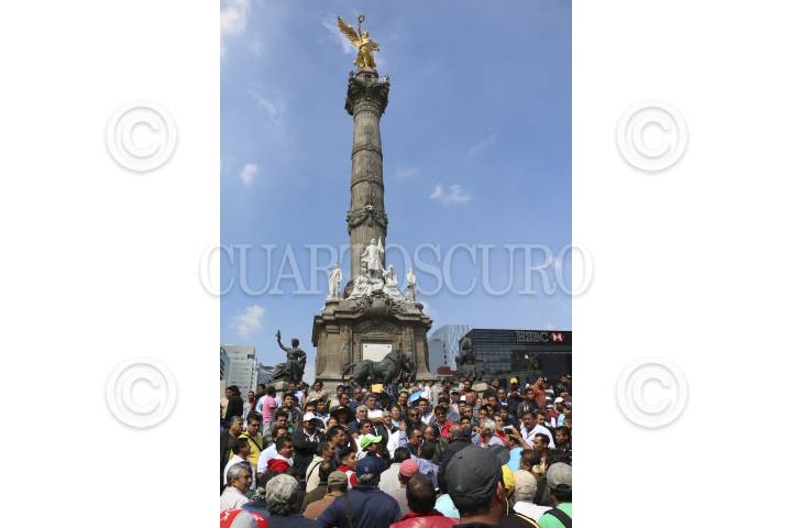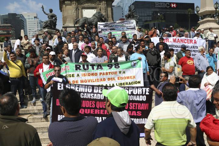 CIUDAD DE MÉXICO, 25AGOSTO2016.- Transportistas de la zona oriente de la Ciudad de México se manifestaron en las escalinatas del Ángel de la Independencia para exigir regulen los operativos a sus unidades y verifiquen el proyecto del Metrobús de la Línea 2, que que aseguran, está en manos de un particular. FOTO: SAÚL LÓPEZ /CUARTOSCURO.COM