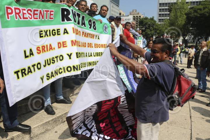 MÉXICO, D.F., 10SEPTIEMBRE2013.- Transportistas de Rutas Unidas denunciaron que fueron defraudados por la Setravi encabezada en ese momento por Armando Quintero, ya que 52 concesionarios de la Ruta 11 cumplieron con los requisitos publicados en la Gaceta Oficial del 9 de Diciembre del 2008, para poder participar en el corredor 2 de Metrobús, sin embargo, en el acta constitutiva de la personal moral Transportes SAJJ S.A de C.V. no se incluyeron a estos trabajadores del volante, ellos aseguran que fueron burlados por autoridades del GDF. FOTO: MOISÉS PABLO /CUARTOSCURO.COM