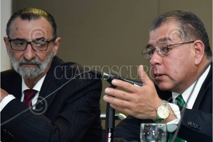 CIUDAD DE MÉXICO, 08NOVIEMBRE2017.- Mario Di Costanzo Armenta, presidente de CONDUSEF, y Luis Fabre Prueba, vicepresidente técnico, presentaron la plataforma web “Micrositio de Sucursales Bancarias”, en la cual el usuario podrá realizar sus reclamaciones y evaluar el servicio proporcionado en la sucursal bancaria. FOTO: MARIO JASSO /CUARTOSCURO.COM