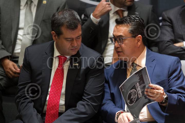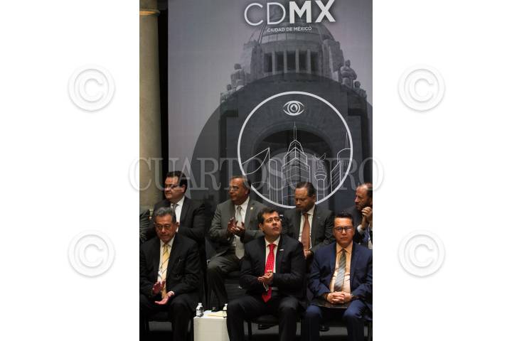 CIUDAD DE MÉXICO, 11JUNIO2018.- Eduardo Rovelo, Contralor General de la Ciudad de México, y José Ramón Amieva, Jefe de Gobierno, durante la presentación del micrositio "Juntos contra la corrupción", el cual ayudará a la personas que realizan algún trámite en las oficinas del gobierno local puedan realizar un denuncia en línea si son objeto de un acto de corrupción. FOTO: MOISÉS PABLO /CUARTOSCURO.COM