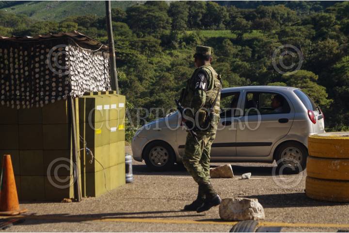 SAN CRISTOBAL DE LAS CASAS, CHIAPAS, 11JULIO2019.- A lo largo de la carretera viaja a Tuxtla Gutierrez, se han instalado retenes de revisión en busca de migrantes irregulares, resguardado por la Guardia Nacional y ejecutado por el Instituto Nacional de Migración. FOTO: JOSÉ SANTIZ /CUARTOSCURO.COM Estación Migratoria Tenosique-1.jpg