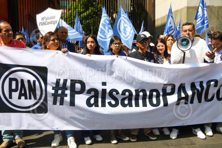 CIUDAD DE MÉXICO. 03JULIO2025.- Panistas se manifestaron frente a la Secretaría de Relaciones Exteriores, en avenida Juárez del Centro Histórico. Demandaron a la SRE, acciones para el regreso de migrantes de Estados Unidos. FOTO: VICTORIA VALTIERRA/CUARTOSCURO.COM