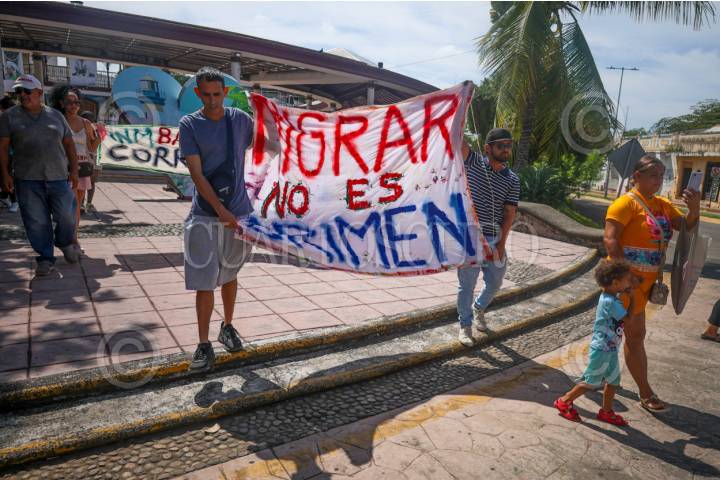 TAPACHULA, CHIAPAS, 01AGOSTO2025.- En este municipio fronterizo con Guatemala, ubicado aproximadamente a una hora en transporte público, personas migrantes y activistas se manifestaron para denunciar que la Comisión Mexicana de Ayuda a Refugiados (COMAR) estaría cobrando por realizar trámites que deberían ser gratuitos. FOTO: DAMIÁN SÁNCHEZ/CUARTOSCURO.COM