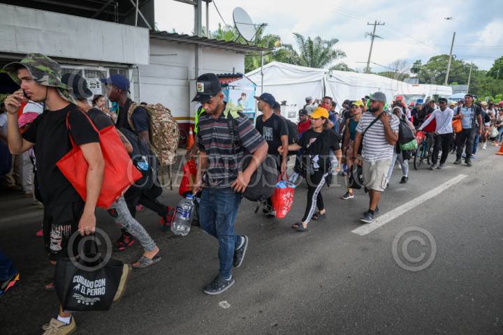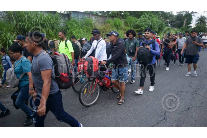 TAPACHULA, CHIAPAS, 06AGOSTO2025.- Cientos de migrantes salieron desde las primeras horas en que ellos denominaron "Caminata por la Libertad" Un aproximado de 350 personas, en su mayoría originarias de Cuba y Venezuela, se concentraron en el parque Bicentenario de Tapachula para iniciar una nueva caravana migrante, que tiene como destino la Ciudad de México. El día de ayer fue detenido el activista Luis Villagrán, uno de los organizadores de este movimiento, sin embargo los caminantes señalaron que a pesar de la criminalización ellos avanzarán, el día de hoy su objetivo es llegar el municipio a Huehuetán. FOTO: DAMIÁN SÁNCHEZ/CUARTOSCURO.COM