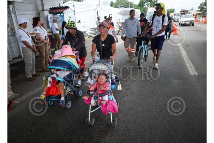 HUEHUETÁN, CHIAPAS, 06AGOSTO2025.- Una pareja de migrantes avanzan con sus hijos, a quienes llevan en carriolas, durante la “Caminata por la Libertad”. Cientos de migrantes, en su mayoría de origen cubano, llegaron al municipio de Huehuetán para descansar después de haber caminado más de 26.1 km. Este grupo está vigilado y monitoreado por integrantes del Instituto Nacional de Migración y agentes de la Fiscalía. FOTO: DAMIÁN SÁNCHEZ/CUARTOSCURO.COM