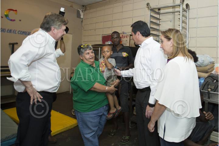 MEXICALI, BAJA CALIFORNIA, 25OCTUBRE2016.- Miguel Ángel Osorio Chong, secretario de Gobernación, acompañado por el Gobernador del Estado de Baja California, Francisco Vega de Lamadrid; los secretarios de Relaciones Exteriores, Claudia Ruiz Massieu, y de Desarrollo Social, Luis Enrique Miranda Nava, y el Subsecretario de Población, Migración y Asuntos Religiosos de la Secretaría de Gobernación, Humberto Roque Villanueva, visitaron el Centro de Mediación Comunitario Cobina, que se ubica en la zona centro de Mexicali, Baja California, en la que dialogó con migrantes haitianos. FOTO: SEGOB /CUARTOSCURO.COM
