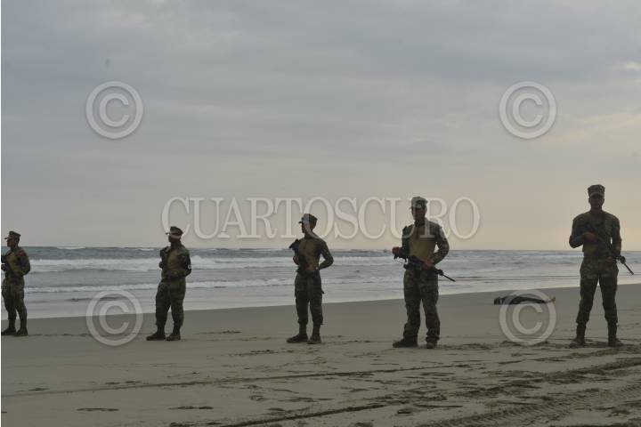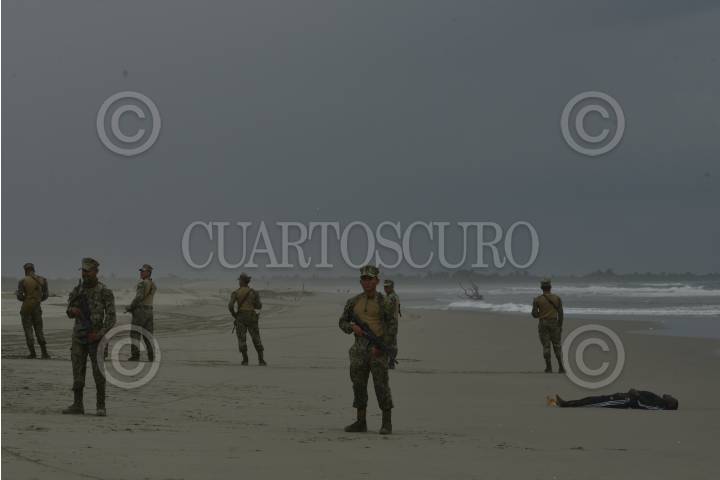 MUNICIPIO DE TONALÁ, CHIAPAS, 11OCTUBRE2019.- Dos migrantes de origen camerunés fallecieron tras naufragar la embarcación en la que viajaban por la costa de Chiapas, informaron este viernes las autoridades estatales. La Fiscalía General del Estado (FGE) sumó dos decesos, luego de que se diera a conocer primero la muerte del migrante Emmanuel Cheo Ngu, de 39 años, originario de Camerún y cuyo cuerpo fue localizado en la orilla del mar la mañana de este viernes. El segundo cuerpo aún no se ha identificado completamente, solo se sabe que también es de Camerún. Informes preliminares indican que hay otra persona desaparecida. Según el reporte oficial, este viernes sobre las 07.00 hora local naufragó una pequeña embarcación a la altura de Puerto Arista, en el municipio de Tonalá. FOTO: ISABEL MATEOS /CUARTOSCURO.COM