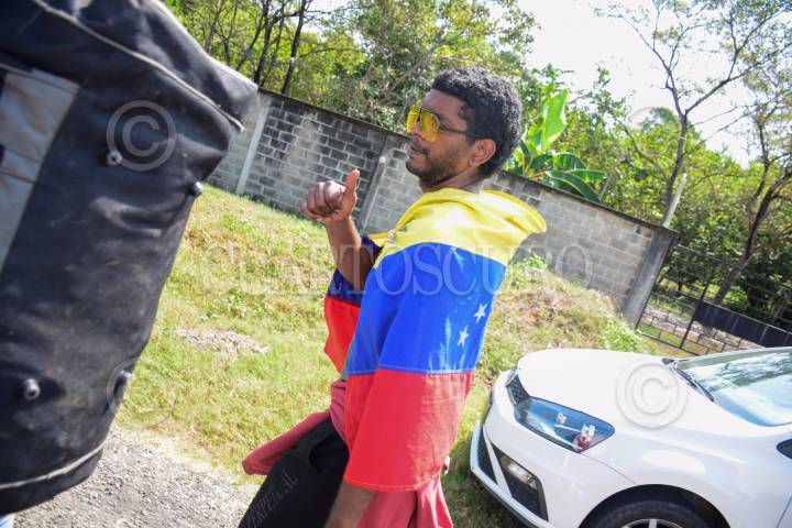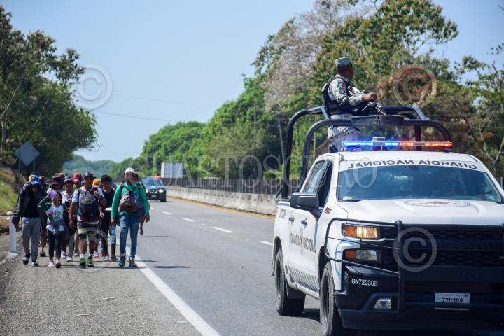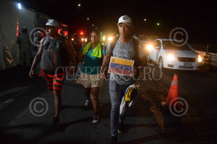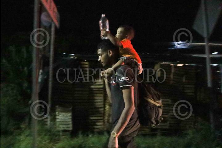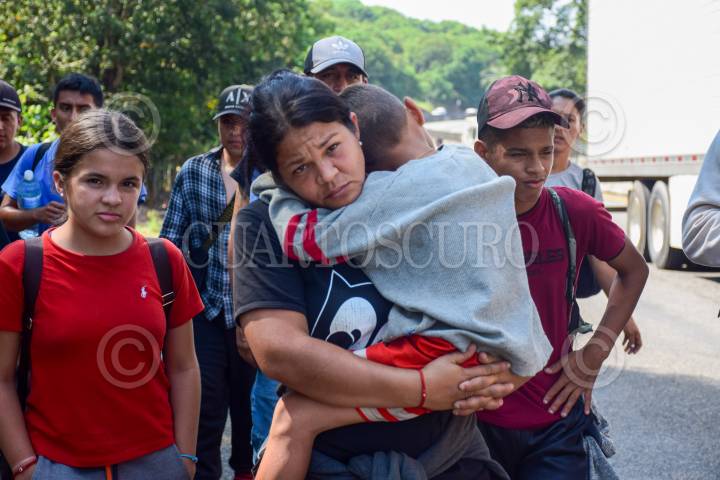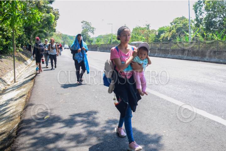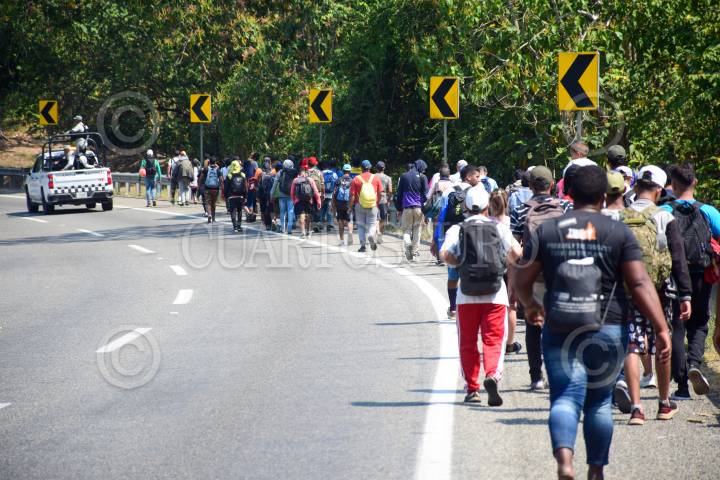 Un aproximado de 500 migrantes caminan por la carretera de México. El grupo de caminante partieron del municipio de Suchiate rumbo al municipio de Tapachula, en su mayoría son Venezolanos.