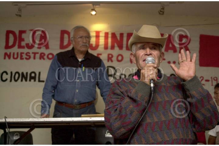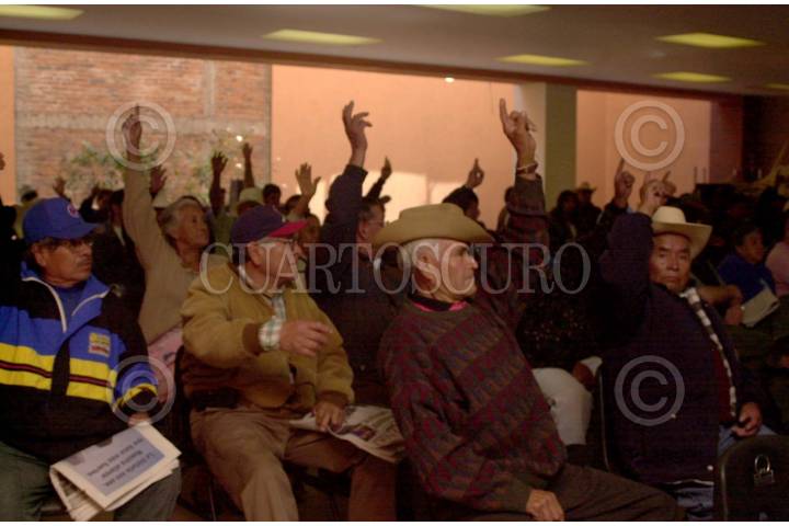 México D.F. 08 FEBRERO 2004.- Ex braceros de los estados de Tlaxcala, Guerro, Oaxaca y del Distrito Federan votan para determinar las condiciones en las que se realizó la asamblea durante el Encuentro Nacional. FOTO: Sandra Perdomo/CUARTOSCURO.COM