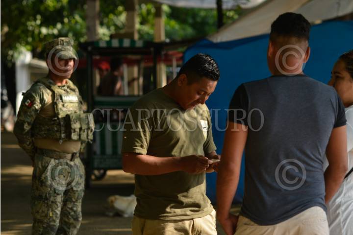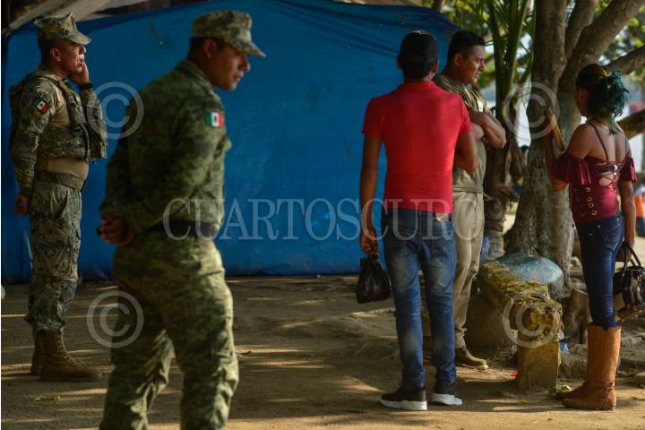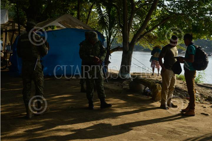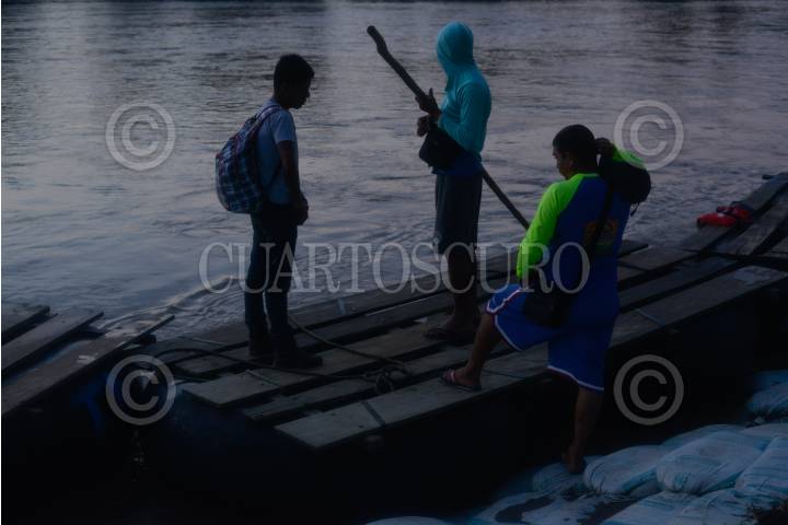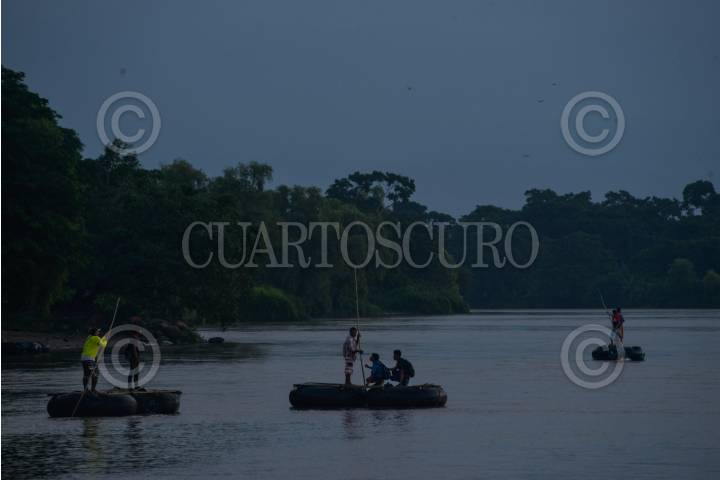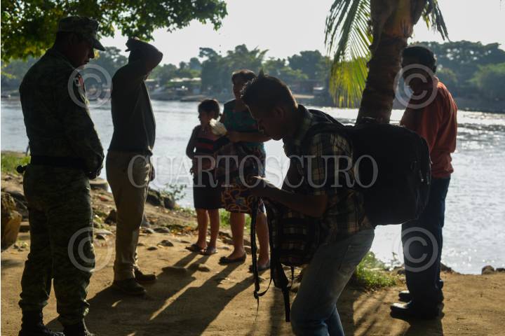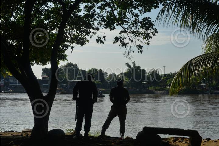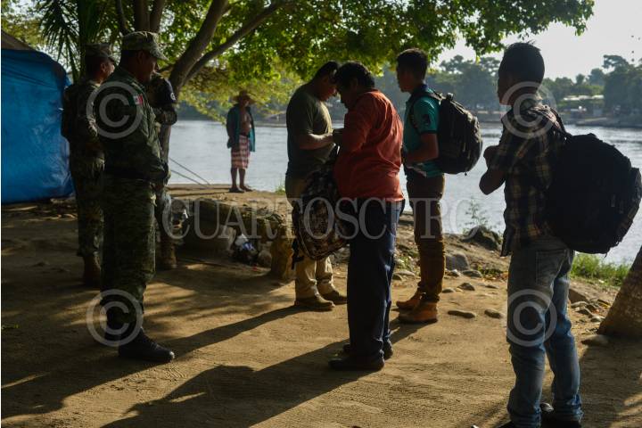 CIUDAD HIDALGO, CHIAPAS, 01SEPTIEMBRE2019.- Elementos de la Guardia Nacional y el Instituto Nacional de Migración continuan con el operativo a lo largo Del Río Suchiate, solicitando documentos a las personas que cruzan el rio diariamente en las balsas. El operativo de mantiene los siete días de la semana las 24 horas del día. FOTO: ISABEL MATEOS /CUARTOSCURO.COM
