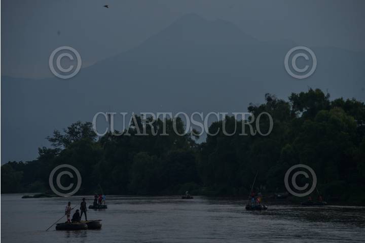 CIUDAD HIDALGO, CHIAPAS, 01SEPTIEMBRE2019.- Vista general Del Río Suchiate después del amanecer. El comercio y el paso de migrantes descendió debido a la presencia militar en las orillas Del Río según declaraciones de los balseros y quienes continuan su vida a la orilla del Suchiate. FOTO: ISABEL MATEOS /CUARTOSCURO.COM