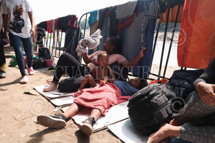 SUCHIATE, CHIAPAS, 16MAYO2024.- Un aproximado de 2500 migrantes de diferentes nacionalidades acampan en los márgenes del río Suchiate, para ser trasladados en autobuses del Instituto Nacional de Migración ( INM). ahí niños, niñas, personas enfermas de calentura, deshidratación y desnutrición. Las familias cocinan sus alimentos, mientras los menores de edad se bañan en el río. FOTO: DAMIÁN SÁNCHEZ(/CUARTOSCURO.COM