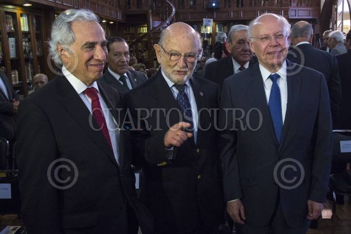 MÉXICO, D.F., 14MAYO2015.- José Sarukhán Kermez junto a Jose Narro, Rector de la UNAM al termino del informe de la Fundación Miguel Alemán Valdés. FOTO: ENRIQUE ORDÓÑEZ /CUARTOSCURO.COM