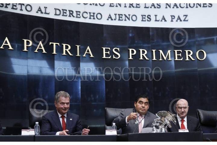 MÉXICO, D.F., 26MAYO2015.- El senador Miguel Barbosa, Presidente del Senado de la República, presidió la sesión solemne de la Comisión Permanente del Congreso de la Unión, en honor de la visita del presidente de la República de Finlandia, Sauli Väinämö Niinistö. FOTO: CUARTOSCURO.COM