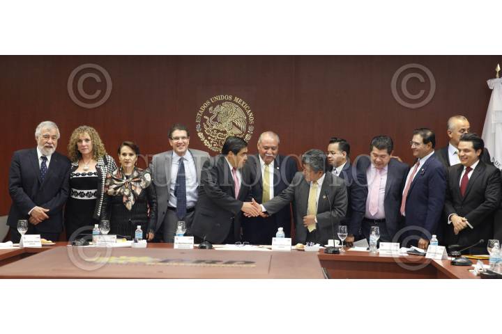 MÉXICO, D.F., 27OCTUBRE2015.- Los coordinadores del PRD, Miguel Ángel Barbosa, Senado y Francisco Martínez Neri, Cámara de Diputados, encabezaron una reunión con los senadores perredistas para analizar el paquete económico 2016. FOTO: CUARTOSCURO.COM