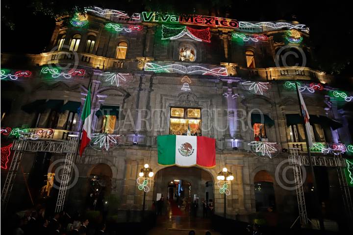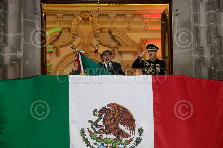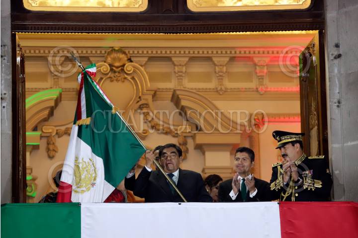 El gobernador Miguel Barbosa Huerta acompañado por el alcalde de Puebla, Eduardo Rivera encabezó la celebración del Grito de Independencia en Palacio Municipal.